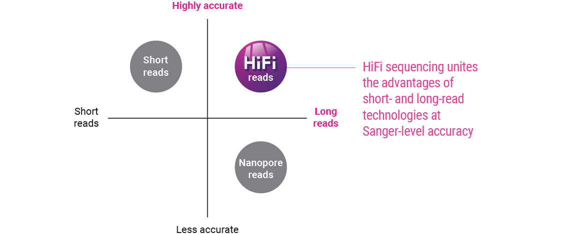 Having accurate and complete information to support the research that can help fuel the development of these therapeutic tools is crucial. Luckily, PacBio HiFi sequencing unites the advantages of short- and long-read technologies at Sanger-level accuracy for gene and cell therapy research.
