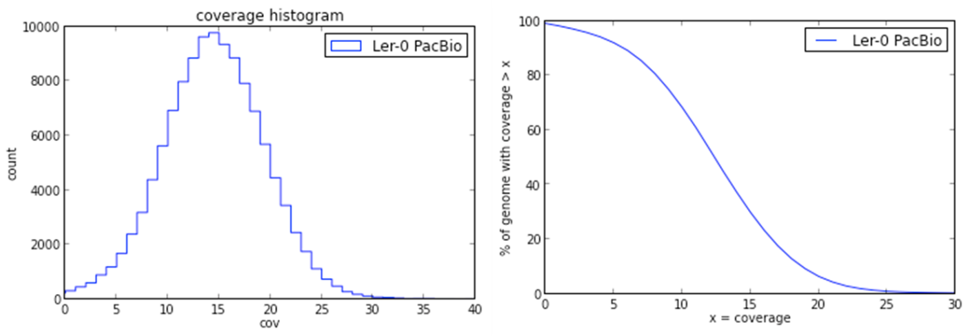 Distribution of sequencing coverage across assembled Arabidopsis Ler-0 genome