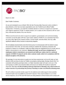 March 23, 2020 important-update-on-pacbio-consumable-shipments Subscribe for blog updates: Search for: Filter by topic Bioinformatics Gene therapy + editing AAV Metagenomics Sequencing methods Whole genome sequencing Targeted sequencing RNA sequencing Epigenetics Liquid biopsy HiFi difference Featured Computational tools Haplotype Genomic sequencing Repeat expansions Multiomics Biopharma Customer success stories Powered by PacBio People First Human genetics research Corporate news General Events + conferences Plant + animal biology Products, procedures + protocols Infectious disease research Microbial sequencing methods Sequencing 101 Agrigenomics Pharmacogenomics Rare disease Microbiome Data analysis Neurogenomics Cancer research Biodiversity Immunogenomics + HLA Public health + surveillance Sample + library preparation