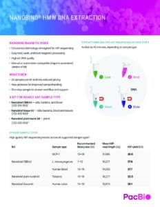 September 9, 2022 Nanobind-HMW-DNA-extraction-flyer Subscribe for blog updates: Search for: Filter by topic Bioinformatics Gene therapy + editing AAV Metagenomics Sequencing methods Whole genome sequencing Targeted sequencing RNA sequencing Epigenetics Liquid biopsy HiFi difference Featured Computational tools Haplotype Genomic sequencing Repeat expansions Multiomics Biopharma Customer success stories Powered by PacBio People First Human genetics research Corporate news General Events + conferences Plant + animal biology Products, procedures + protocols Infectious disease research Microbial sequencing methods Sequencing 101 Agrigenomics Pharmacogenomics Rare disease Microbiome Data analysis Neurogenomics Cancer research Biodiversity Immunogenomics + HLA Public health + surveillance Sample + library preparation