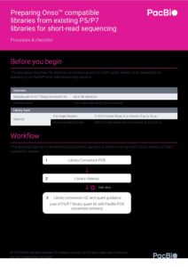 August 24, 2023 Procedure-checklist-Preparing-Onso-libraries-from-existing-P5P7-libraries-for-short-read-sequencing Subscribe for blog updates: Search for: Filter by topic Bioinformatics Gene therapy + editing AAV Metagenomics Sequencing methods Whole genome sequencing Targeted sequencing RNA sequencing Epigenetics Liquid biopsy HiFi difference Featured Computational tools Haplotype Genomic sequencing Repeat expansions Multiomics Biopharma Customer success stories Powered by PacBio People First Human genetics research Corporate news General Events + conferences Plant + animal biology Products, procedures + protocols Infectious disease research Microbial sequencing methods Sequencing 101 Agrigenomics Pharmacogenomics Rare disease Microbiome Data analysis Neurogenomics Cancer research Biodiversity Immunogenomics + HLA Public health + surveillance Sample + library preparation