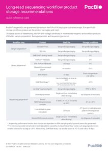 April 1, 2024 Quick-Reference-Card-Commercial-Workflow-Product-Shelf-Life-and-Storage-Recommendations Subscribe for blog updates: Search for: Filter by topic Bioinformatics Gene therapy + editing AAV Metagenomics Sequencing methods Whole genome sequencing Targeted sequencing RNA sequencing Epigenetics Liquid biopsy HiFi difference Featured Computational tools Haplotype Genomic sequencing Repeat expansions Multiomics Biopharma Customer success stories Powered by PacBio People First Human genetics research Corporate news General Events + conferences Plant + animal biology Products, procedures + protocols Infectious disease research Microbial sequencing methods Sequencing 101 Agrigenomics Pharmacogenomics Rare disease Microbiome Data analysis Neurogenomics Cancer research Biodiversity Immunogenomics + HLA Public health + surveillance Sample + library preparation