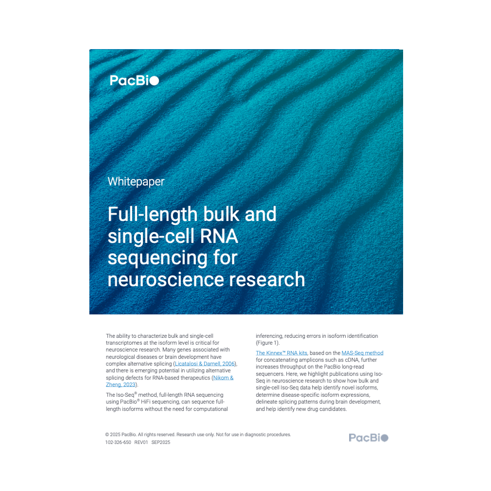 This whitepaper highlights publications using long-read RNA sequencing for neuroscience research, ranging from novel isoform discovery, genetic variant risk association, differential isoform detection, to biomarker and therapeutics applications.